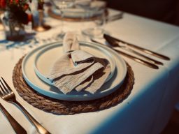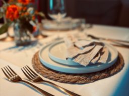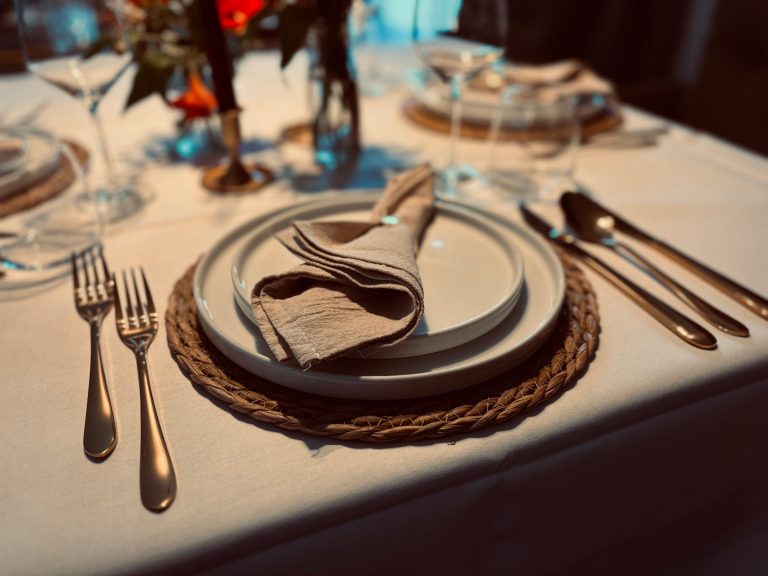 Geschirr, Besteck, Gläser, Servietten & Kerzenleuchter