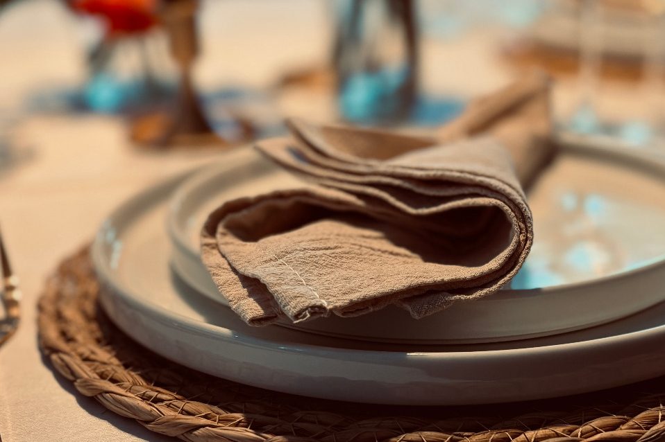 In verschiedenen Farben bringen die unregelmäßigen Leinenservietten Leichtigkeit & einen legeren Stil auf den Tisch.