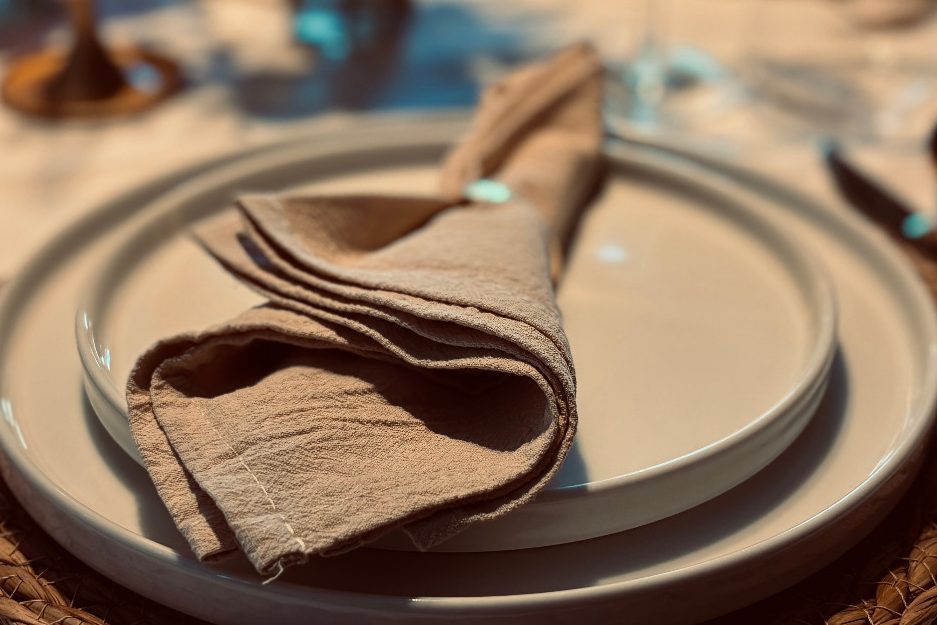 In verschiedenen Farben bringen die unregelmäßigen Leinenservietten Leichtigkeit & einen legeren Stil auf den Tisch.